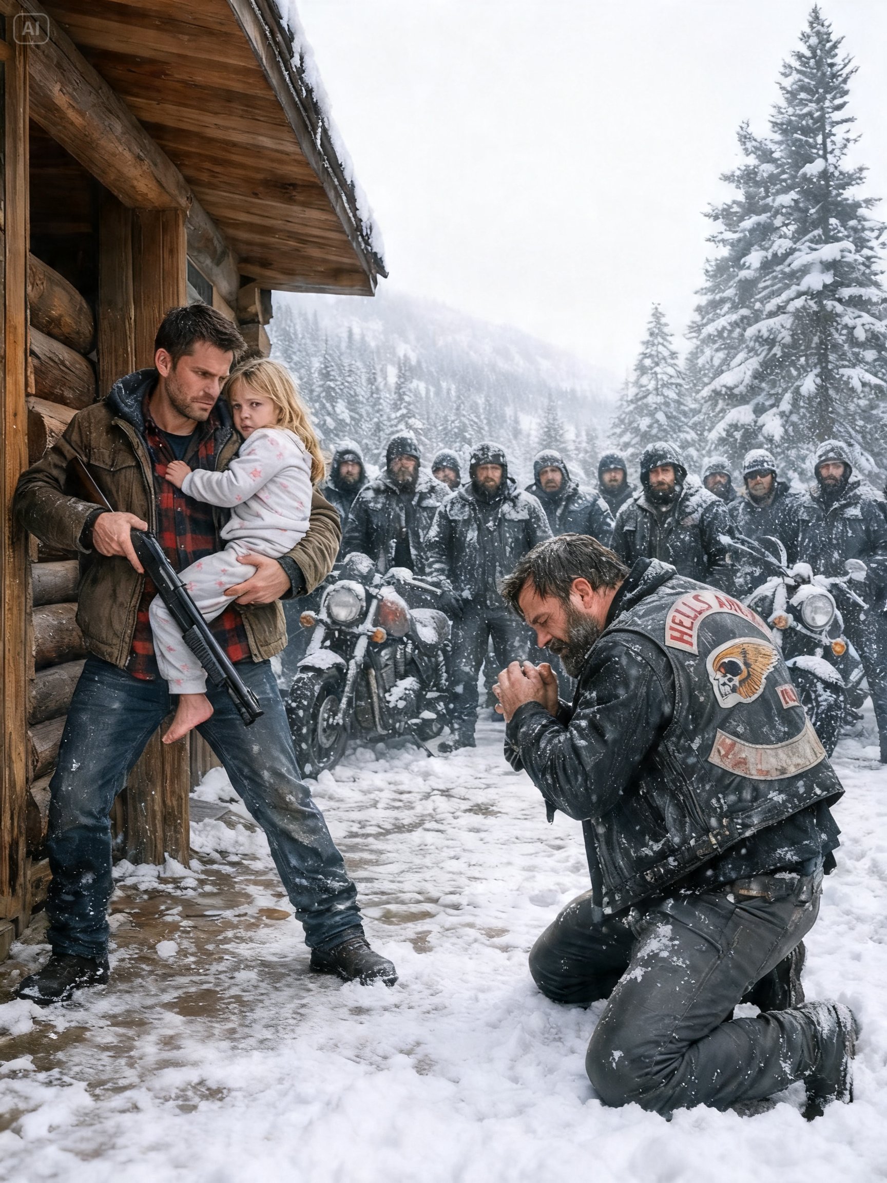 A SINGLE DAD VETERAN SHELTERED 15 HELLS ANGELS IN A BLIZZARD – BY MORNING 102 BIKES SURROUNDED HIS CABIN