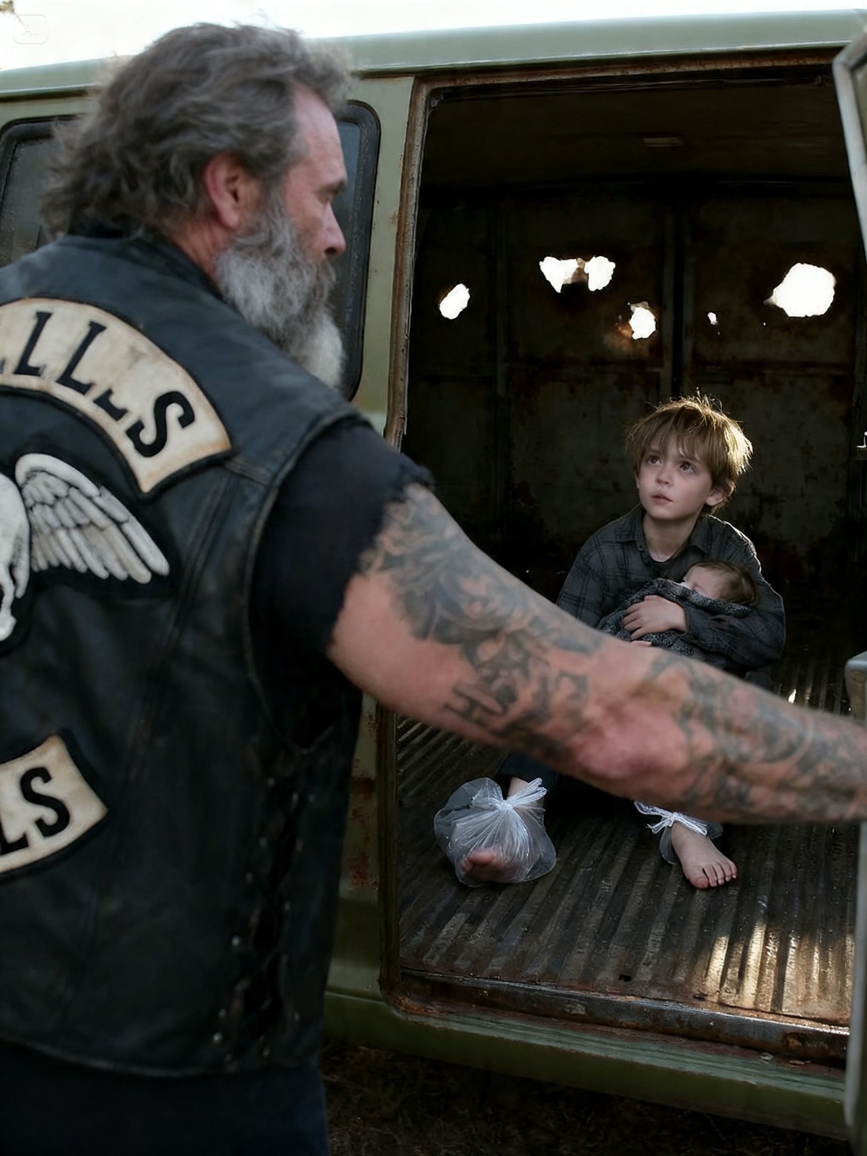 HE WAS 7, BAREFOOT, AND TRYING TO KEEP HIS BABY SISTER ALIVE – THEN 300 HELLS ANGELS UNCOVERED THE EVIL HIDDEN IN A RUSTED VAN