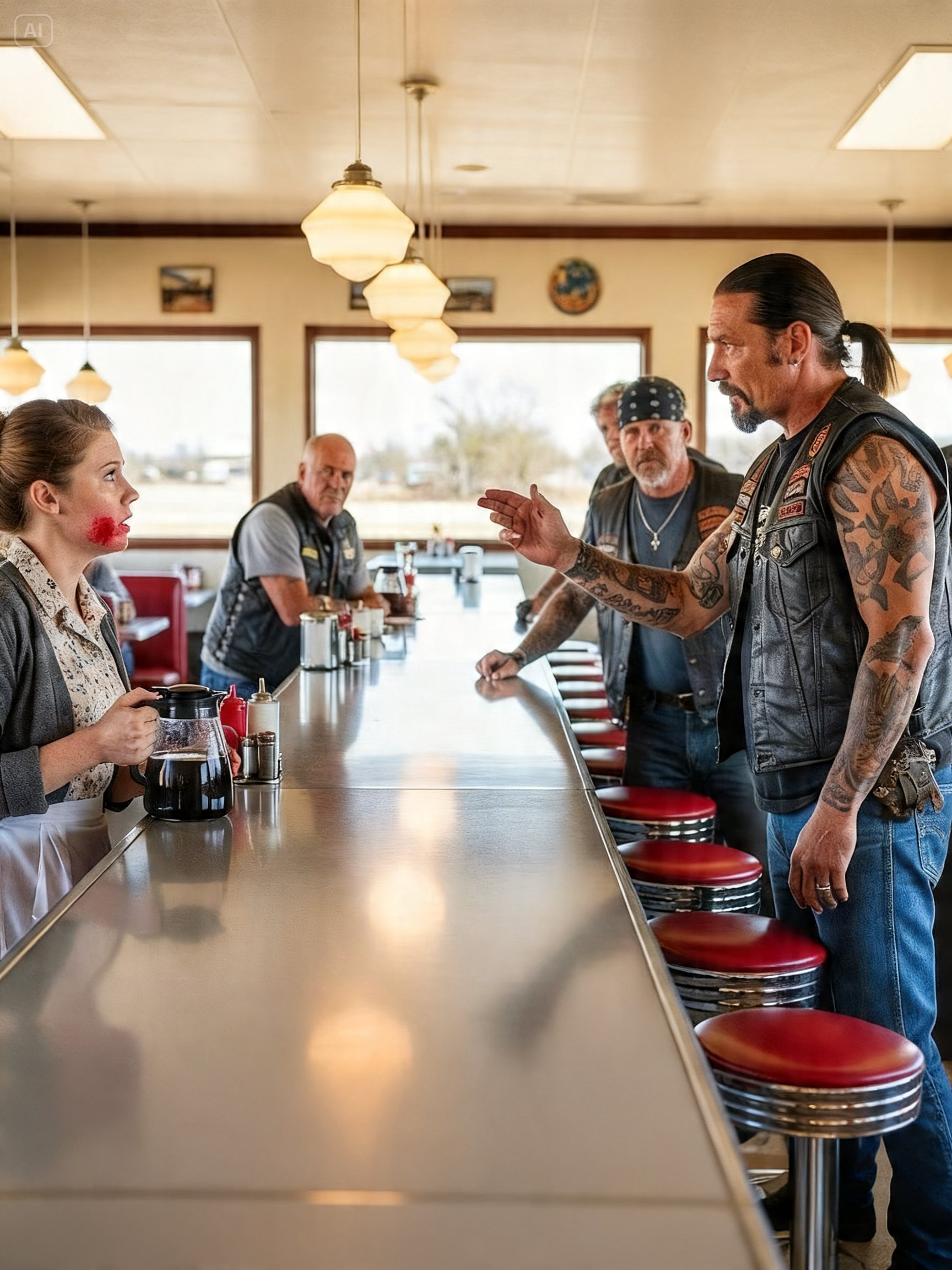BIKER GANG LEADER NOTICED THE WAITRESS’S BRUISES – WHAT HE DID NEXT SHOCKED THE WHOLE TOWN