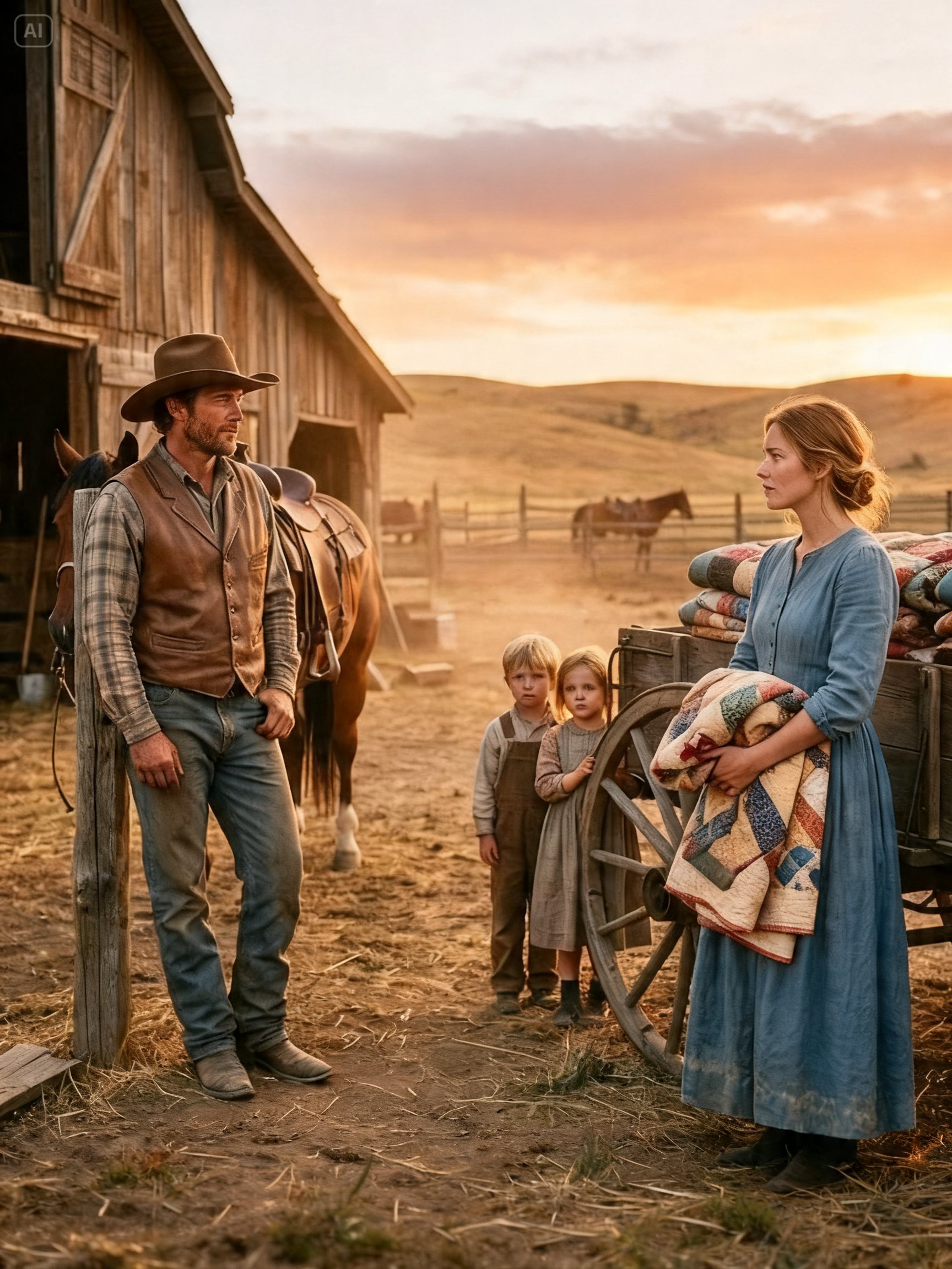 It rose in two white lines from the chimney of the ranch house and curled into the late-evening sky like something impossible. Six weeks earlier he had ridden away from that same place after signing the last of the papers in Cheyenne and cursing himself for buying a dead ranch no sane man would have wanted. The porch sagged. The roof leaked. The well coughed up mud more often than water. The pasture was mean grass and rock. He had left it empty because empty was all he knew how to keep.