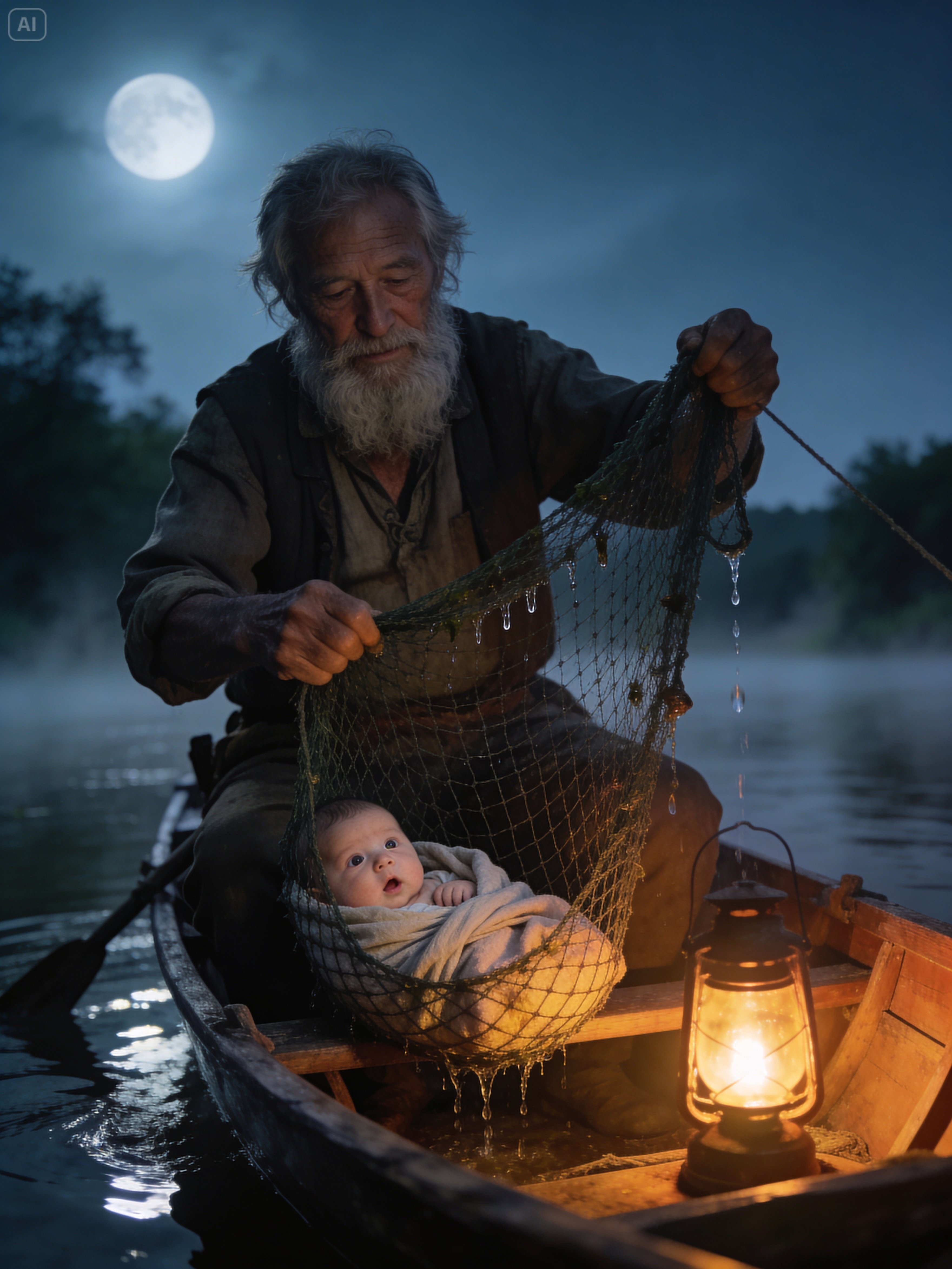 Sometimes, when he pushed his old wooden boat into the current and let it carry him into the dark seam where water turned from silver to black, he spoke aloud to it as if it were a witness. On nights when the net came up empty, he would stare down into the surface and murmur, You too have lost everything, haven’t you? And the river, with its endless movement and low restless breathing against the hull, seemed to answer in a language older than comfort.