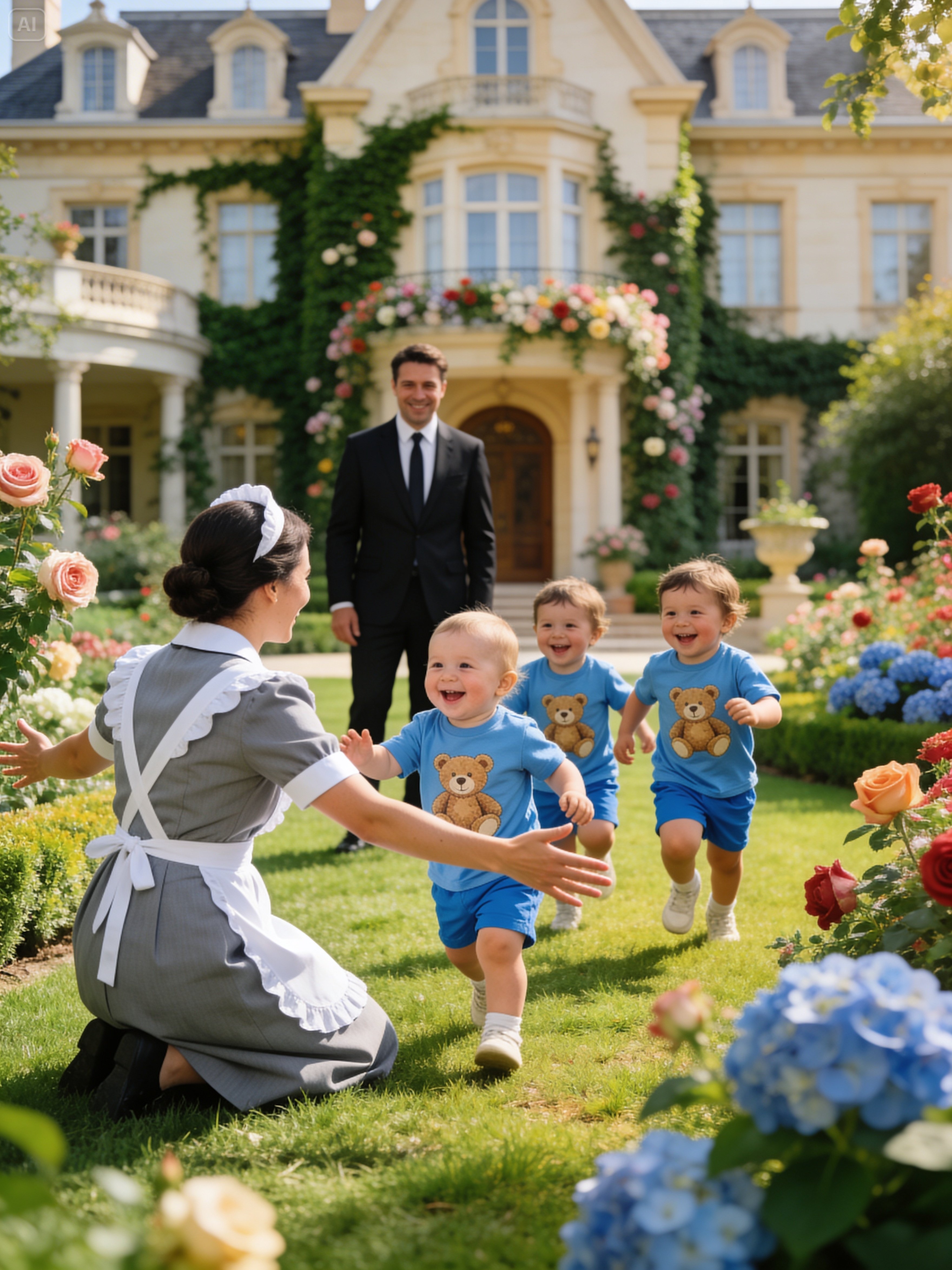 Not the kind he was hearing now. Not the bright, helpless, bubbling laughter of children who had forgotten to be careful. Not the kind that came from the belly and spilled out without permission. His mansion had known other sounds for the past two years—soft footsteps, hushed voices, doors closing carefully, the muted rhythm of nurses, nannies, and maids moving through rooms designed for comfort but haunted by grief.